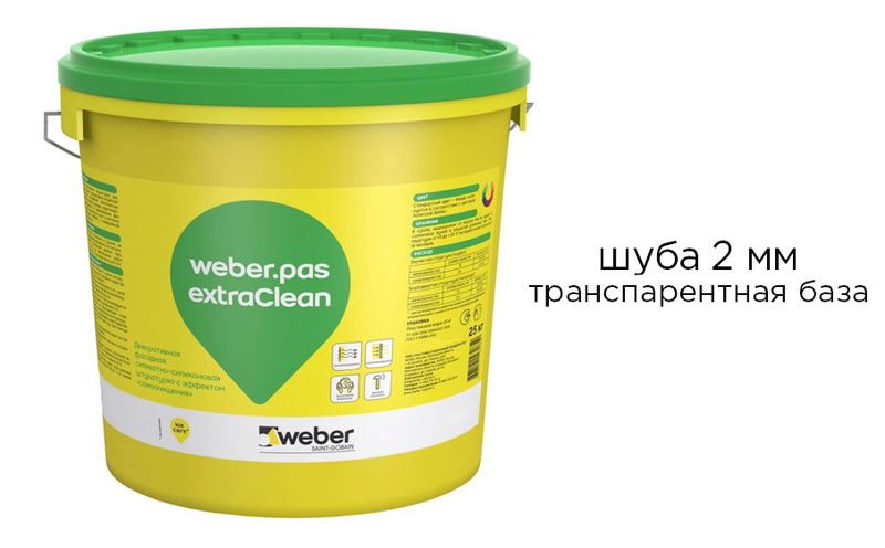 Декоративная силикатно-силиконовая штукатурка weber.pas extraClean шуба 2 мм, транспарентная база, 25 кг