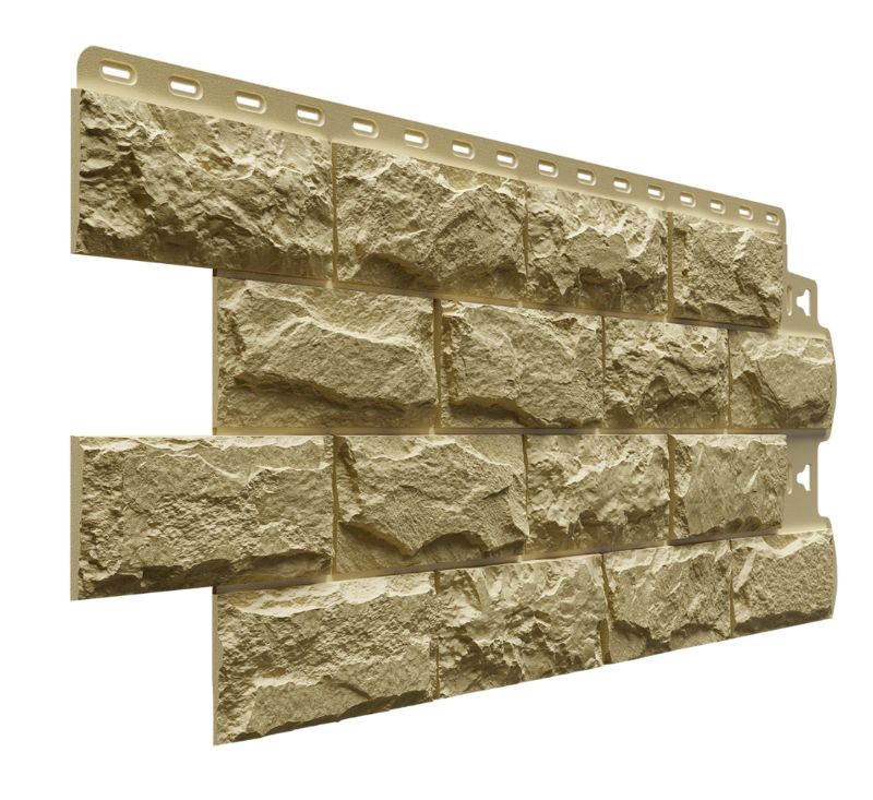 Фасадные панели оттенка «Шатель» неотличимы на вид от натуральной скальной породы. Высокотехнологичная окраска фактурного прочного материала позволяет достигнуть максимальной реалистичности.