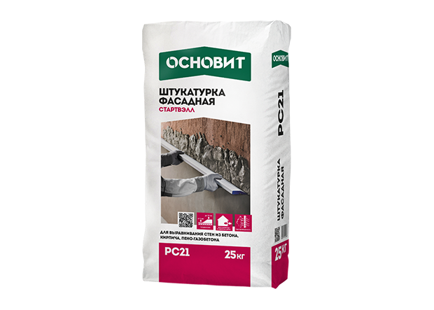 Штукатурка ОСНОВИТ СТАРТВЭЛЛ PC21 предназначена для выравнивания стен из бетона, кирпича, пено- и газобетона.