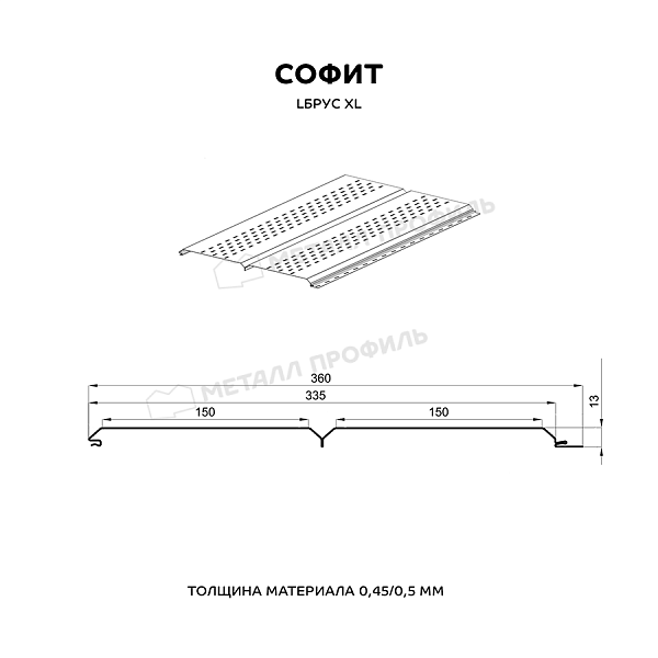 Софит МЕТАЛЛ ПРОФИЛЬ перфор. Lбрус-XL-14х335 NormanMP (ПЭ-01-7004-0.5)