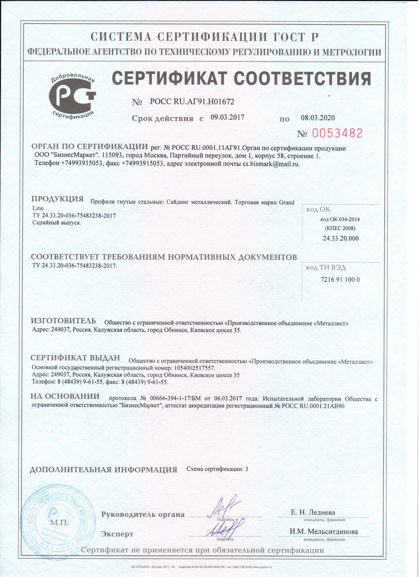 Подтвержденное сертификатами и действующими ГОСТ